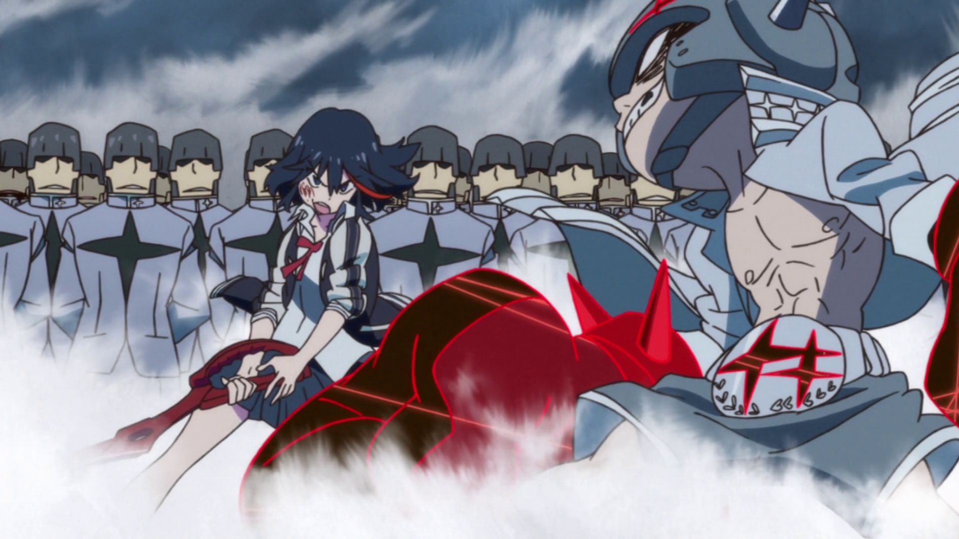 Premise: Honnoji Academy is ruled by the iron fist of Satsuki Kiryuin, president of the student council. Tyranny rules the day and dissent is mercilessly executed. That all changes when Ryuko Matoi transfers into the school, carrying her scissor sword and a chip on her shoulder…