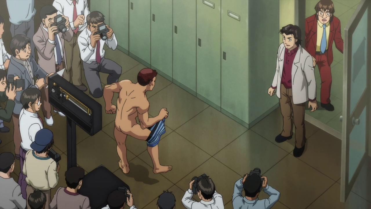 Speaking of straddling sincerity and comedy, we go back to the Kamogawa Gym to see Aoki doing rather…poorly at preparing for his title fight. First dropping so much weight he turns into a skeleton, then proceeding to put on enough to qualify as a sumo wrestler, it’s easy to see why Aoki is little more than comic relief in this series. Despite that, we get some poignant moments with him and his bro Kimura. Sure, they might be those two guys at the gym, but they’re damn good fighters with a lot of heart. It really makes you want to root for them, despite all their failings.