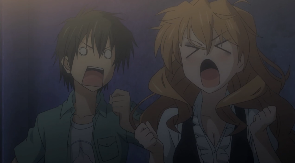 Undergrads are so carefree. Other than the surprising confession, the most major kick I got from this episode was Satou Satomi’s role as the death metal vocalist. I literally rolled over laughing when I saw the credits and doubled back to see if I could hear anything like Ritsu or Chitanda.