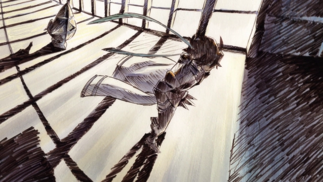 Trigger continue to bring style and panache to the visual aspect of the production, and the fight choreography here is top notch. It’s a thrill to see them shoehorn mecha into the setting and pay homage to their glorious past. Elsewhere, there’s smart allocation of resources not only to save money but to crank up the humour – Matarou’s sleazy bribe job is that much funnier for being presented in still frames, which framing the flashback in 4:3 might be my favourite joke of the episode. With our hero on the back foot, it’ll be interesting to see if the script gives her a breather or decides to turn the screw further.