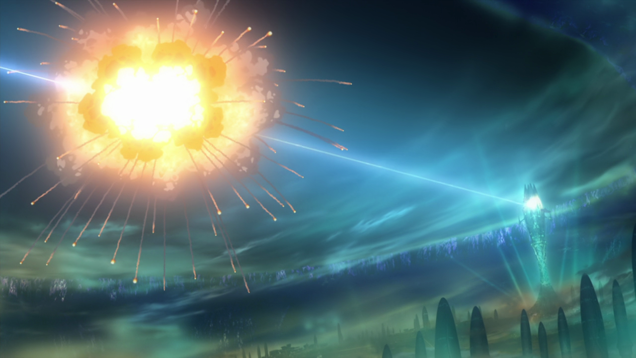 The episode concludes with the greatest reveal of all: A video message from Mamoru Kodai, the older brother who we previously thought had been killed on the Yukikaze at the beginning of the series. Captured with the intention of experimentation, the elder Kodai crash landed on Iscandar where he was rescued by Starsha, but eventually succumbed to his wounds. His final message to the Yamato crew about the importance of working together with the aliens is a good summation of everything Yamato 2199 was leading toward. With the assistance of Melda and the other Gamilans along with the Yamato’s own efforts to save the Gamilans from destruction, Yamato 2199 is inherently a show about coming to an understanding across boundaries and differences. In addition, the younger Kodai finally earns some closure on the story of his older brother. It is something of a comfort, to know he had died on a beautiful planet in the care of a protector, rather than alone in the cold depths of space.