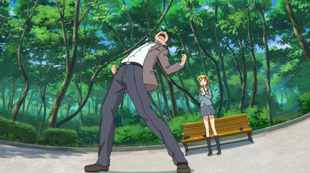 There’s probably a dozen moments I could have chose from Kotoura-san, but I decided to go with my gut and pick the first thing that came to mind. In episode 9 Haruka is feeling uneasy after reading the mind of criminal and asks Manabe to stay with her. In some ways this makes her even more frightened, but after deliberating in her mind she finally just yells “whatever happens, happens!” and that kind of sums up why I love the romance in Kotoura-san. The relationship between Haruka and Manabe is totally natural and the way their personalities mesh make them the most adorable couple of 2013.