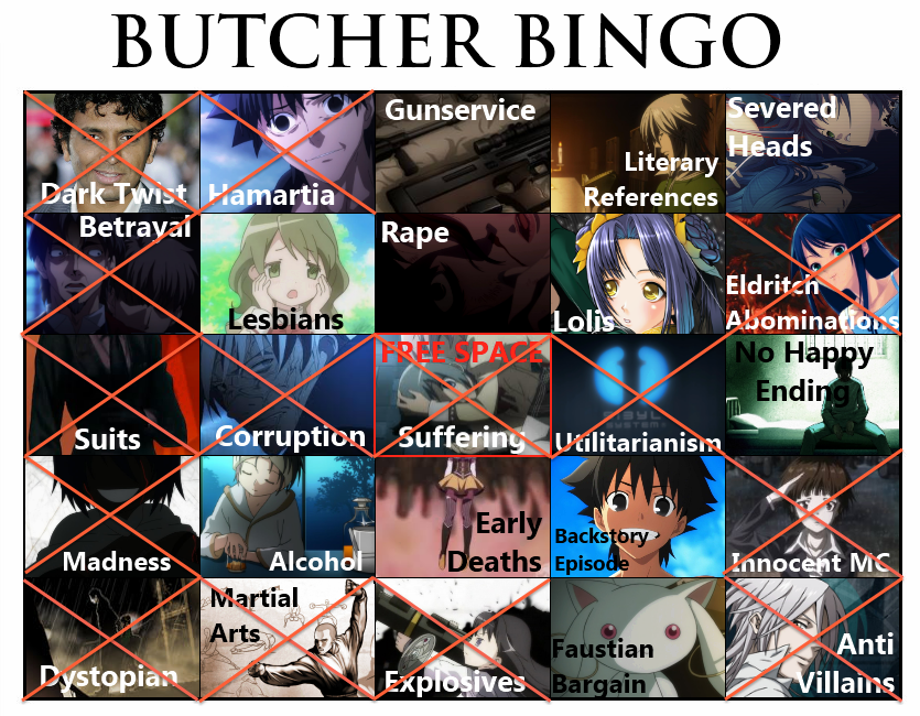 Anyways, just to recapitulate, here’s the Butcher Bingo spaces we got to cross out already: