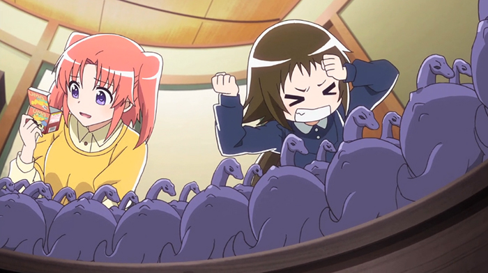 As mentioned, I also enjoyed Mashiro’s little subplot as she pursued her collection of other legendary monster toys. The irony of this considering her own origins made the set up that much better, and the Nessie joke was repeated just enough to make it hilarious. I’ll also give Benio credit for the giant Valentine’s chocolate cakes, as they made for a great visual gag toward the end. All in all this was a really sweet and fun episode and a really natural follow-up to last week’s big reveal.