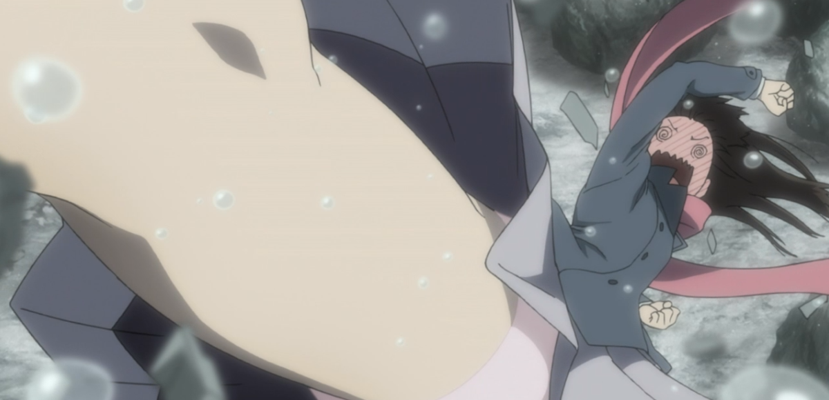 Everything about this finale worked perfectly, and I can honestly say that there is nothing I really have to complain about it. The fight was so frenetic and engaging that it never lost my interest. It really felt like the fight between two old gods, duking with powers above mortal men. I especially liked the hard impacts whenever someone was sent flying. As we’ve previously noted in Kill la Kill, there’s nothing that shows both the strength of the attacker and defender than showing everything break behind them as they remain intact.