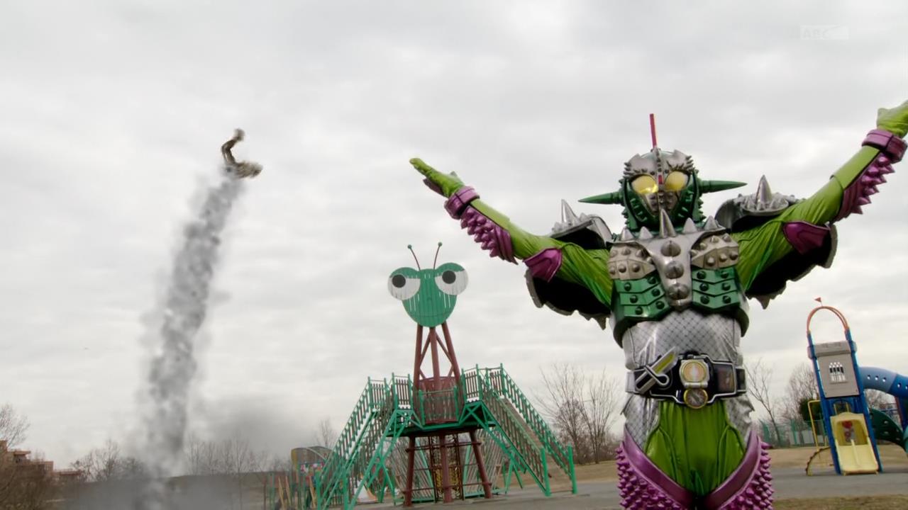 Let’s deal with the comedy stuff first, because it takes up most of the episode but is also the least important. I’m pleased that we’ve got Oren and Jounouchi back on our screens, and there were some great, ultra-goofy interludes here, with the training montage and continuous NEVER GIVE UPs being a particular highlight. With that said, I don’t think there was enough of an emotional payoff at the end. It’s true that Jounouchi had a sort-of-realisation, and the mentor-student is played up adorably (it’s worth noting Kamen Rider has a small but vociferous adult female fanbase). But it’s a pretty cheap and forced resolution that doesn’t really grow either of them as characters, though it’s interesting to note that Oren seems to be turning towards the side of the angels. The slapstick was pretty great but I do wish it could have been stitched in more cohesively and balanced with the other elements a bit better.