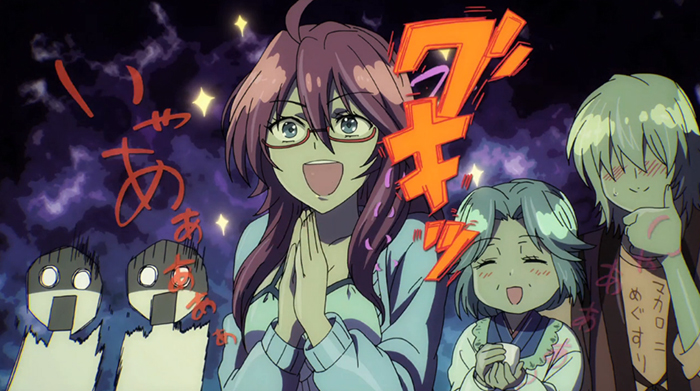 I initially came into Kawaisou only expecting it to be another Sakurasou. The similarities were there superficially: A main romantic duo made up of a reliable everydude and a stoic quiet girl, a dorm filled with an assortment of wackos, I could go on. Unfortunately, it shot out of the gate and tripped on the first pot hole. I have to wonder if watching this show was like watching the evolution of how Ruri Miyahara changed the formula as it went on. It starts out as an absolutely atrocious gag comedy. Far too much focus is given towards the adult housemates, with Usa being the straight man in trite manzai routines. The biggest problem with them is that they have almost no character. They exist to spout the same gags over and over. Even in the episodes devoted to them, they do little to define themselves outside their monikers.