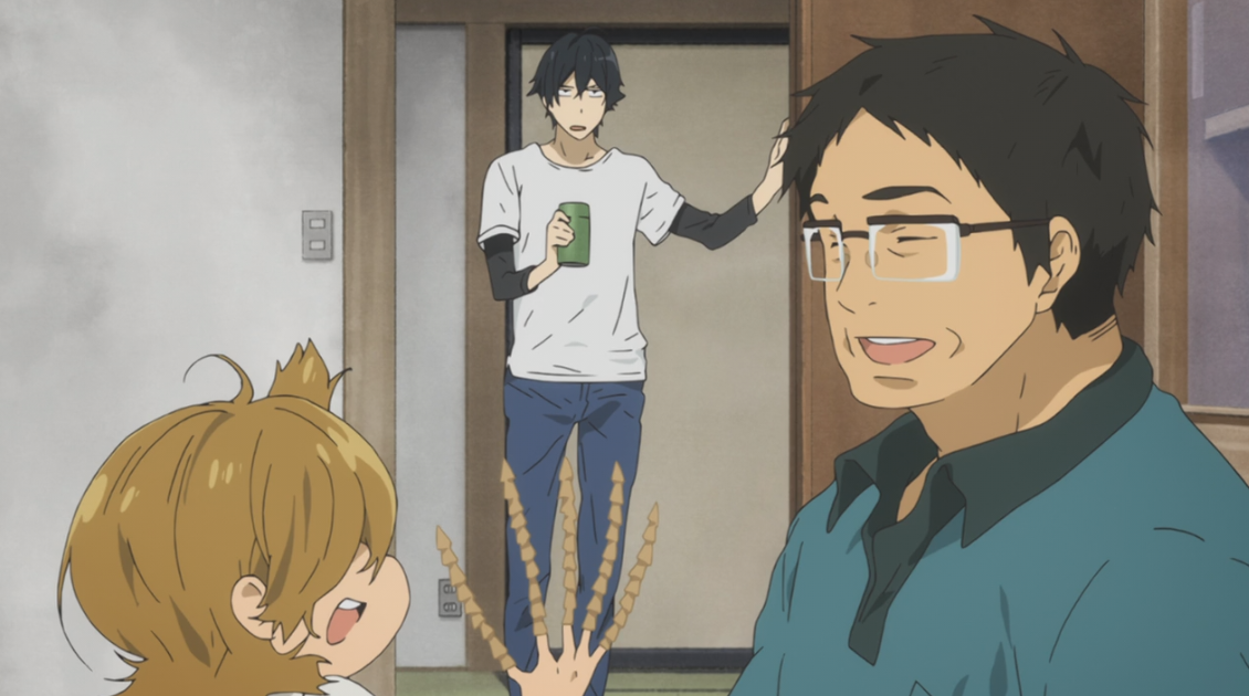 The episode is done and I’m still not sure exactly how I feel about Barakamon. The show has all of the classic trappings that make up likeable slice of life shows. Lord knows there’s enough no-nonsense grownups questionably saddled with peppy little girls out there. Naru certainly has the peppy down pat. There’s a lot of the youthful innocence that makes the Yotsuba& series so appealing. Her voice is also so full of energy without getting too grating or squeaky. There is even some foreshadowing to some deeper storytelling as we get to know more about her. If you notice at the end, we never do see Naru’s parents even though it’s explicitly stated everyone in town has come to see Handa. Handa himself has what must be one of the most niche jobs ever. I understand there is still a high cultural value put on good calligraphy in Japan, but the idea of the style of someone’s writing being a job will always be a very foreign concept to me. The show does a good job of showing that Handa isn’t just some hothead, that he understands his problems, but does not yet know how to address them.
