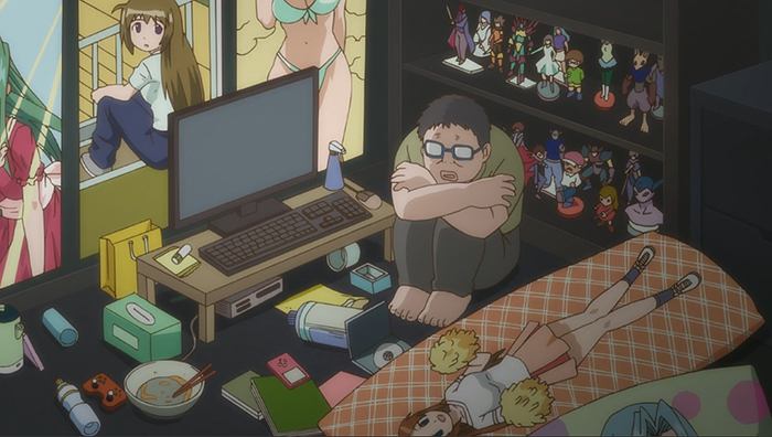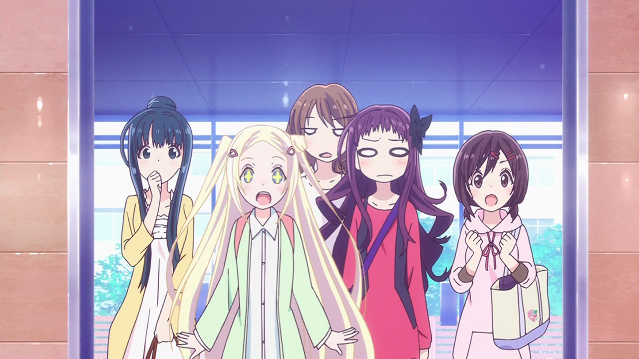 Aquagaze: Please slam the final nail in the coffin of the once omnipresent trope that is the diet episode, because not even HaNaYaMaTa can get rid of the implication that it is somehow Naru’s moral duty to look even more inhumanly skinny than she already does. Luckily, the show doesn’t stray on this topic for long and briskly moves on to the order of the day — dancing, with persistent continuity nods, characterization and another plethora of creative ways to not have to animate any dancing. As the girls prepare for their first gig — which is almost hilariously anything but romanticized, with a craptastic MIDI arrangement of the theme song as a particular standout, we finally get Matchi in on the action, though knowing this show, it’s probably going to take an episode or two before the five-man-band is truly complete. Though this episode was a lot breezier than last week’s drama bomb, the ending hit surprisingly hard again, picking back up on Naru’s fatal flaws after they got buried under Yaya’s drama queen antics. I love the way HaNaYaMaTa handles its continuous character development, and it’s proven it can do drama almost as well as comedy, so I’m definitely still on board with whatever it pulls off next.