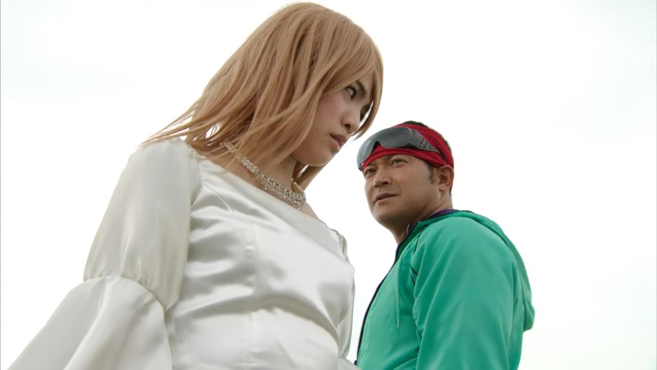 Of the multiple outstanding segments, probably the weakest is the opening ‘death’ scene between Kouta and Mitchy. While I’m aware that Kamen Rider is inherently an incredibly over-the-top show, I probably would have dialed back the melodrama here a bit. It’s mostly a presentational thing, what with all of the spotlighting and falling feathers veering dangerously close to outright camp. What saves it, and in fact propels the segment all the way to ‘very strong’ is the acting. Gaku Sano delivers the best performance he ever has as Kouta, really throwing his all into it. As a result, the somewhat cliched ‘I forgive you’ sequence becomes a magnificently intense, desperate plea, which is perfectly complemented by Mahiro Takasugi’s tearful yet angry Mitchy. The entire scene crackles with emotion and does a great job of reminding the journey these two have taken, and that there was a genuine friendship at the beginning of it. If you’re going to attempt a Mitchy rehabilitation, this is about as well as you could have set it in motion…which is ironic considering he’s just killed our hero.