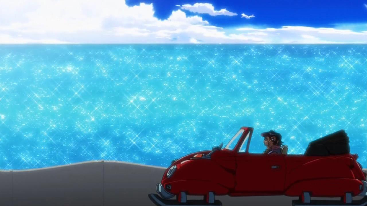 Like many of the great Space Dandy episodes we’ve seen by now, this one takes a relatively well explored idea – woman ropes in fake boyfriend, they have to get along – and makes hay with it. It’s great to see Scarlet get some more screen time and the writers wisely play up the goofishly charming side of Dandy. Using the old ‘opposites attract’ rule, the two have surprisingly good chemistry and consequently their odd couple romance rings true. Wisely though the angle is mostly backgrounded until the closing segment. Instead, this episode plays fast and loose with cutting lines and great sight gags, and it’s the closest the show has gotten to a straight sitcom in quite a few weeks. As ever, the scifi setting and general madness of the world means these jokes can be well exaggerated to get bigger laughs. I’m a particularly big fan of the stalker robot popping up in completely inappropriate places. The resort satellite is the perfect excuse for a bunch of totally different locations and there’s a nicely exotic, world-hopping vibe. It’s not hurt by some of the slickest, most consistently on-model animation we’ve seen from the show in quite some time. There’s not the amazing artistic vision of some endeavours but it’s a slick, very good looking episode.