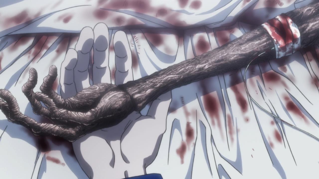 I’m kidding of course. It’s great to see that Hunter x Hunter isn’t putting the brakes on too soon before it completes its run, and what a couple of episodes we’ve just had. First of all, the award for ‘most shocking scene in a shounen anime’ is stolen from HxH, only to be given right back. Seeing Killua hold what’s left of Gon’s withered body came as a complete shock. We knew it was bad, and that the doctors said he was lucky to be alive (yeah, no shit!), but even so, the small reveal was a complete sucker punch. The scene is completed with Killua’s reaction. His best friend seeing how truly pitiful Gon’s condition is. Hell, Killua probably already knew the extent of the damage considering it was him who brought Gon back to the palace after Pitou’s death, but it was still enough to reduce him to tears. Truly one of the most memorable moments of the show thus far.