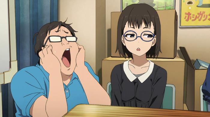 Jel: After having a week to sleep on it, I must admit there was a certain charm to Shirobako that made me feel like I should give it another shot. As I was watching the episode, seeing Miyamori skillfully handle the aftermath of last week’s crisis, I started to think I could like this. Then the episode started to drag as the focus turned away from the people and on to their tasks for what seemed like forever. I started thinking “OK we’re probably almost done with the episode, right?”, glanced at the time stamp…. 6 minutes in. I somehow stuck it out for the rest of the episode, even through the weird hologram/drug addled hallucination scene, but it felt like a grind. I want to like Shirobako as I really like Miyamori and the rest of the cast but I think I have to accept it’s just not for me. Side note though: the anime they’re making sounds INSANE. I’d watch that.