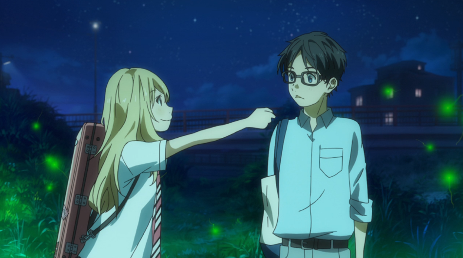 Kousei runs into his mother’s old friend. Elsewhere, Takeshi has a crisis of conscience as his image of Kousei is shattered by the competition. With his spirits renewed, Kousei resolves to keep playing just as Kaori gets an invitation to a new event.