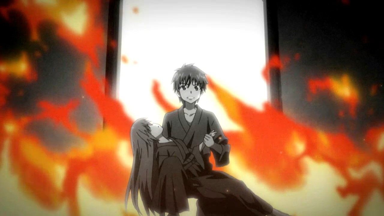 So get this, you guys, there’s this brown-haired dude with, like, this super dark thing in his past that motivates him where some woman he knew died in his arms in black and white. And he’s starting at this school. But it’s not, like, an ordinary school; it’s a school where they teach fighting to kids with special powers that let them summon weapons! And in the entrance exam they have to fight another student, and only the winners make it into the school (so cool)!