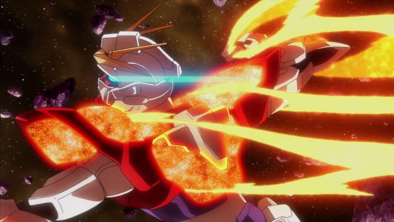 And my god does it punch the shit out of things. One would almost want to accuse Team Try Fighters of a particularly cruel brand of overkill, because goddamn they brutalized the enemy team this week. Of course it’s a bunch of nameless mooks so nobody really cares, but considering how much of the original Gundam Build Fighters was about the importance of good sportsmanship and respecting each other’s gunpla, I can’t help but find it hypocritical that the heroes are allowed to mangle their opponents’ suits with no consequence.