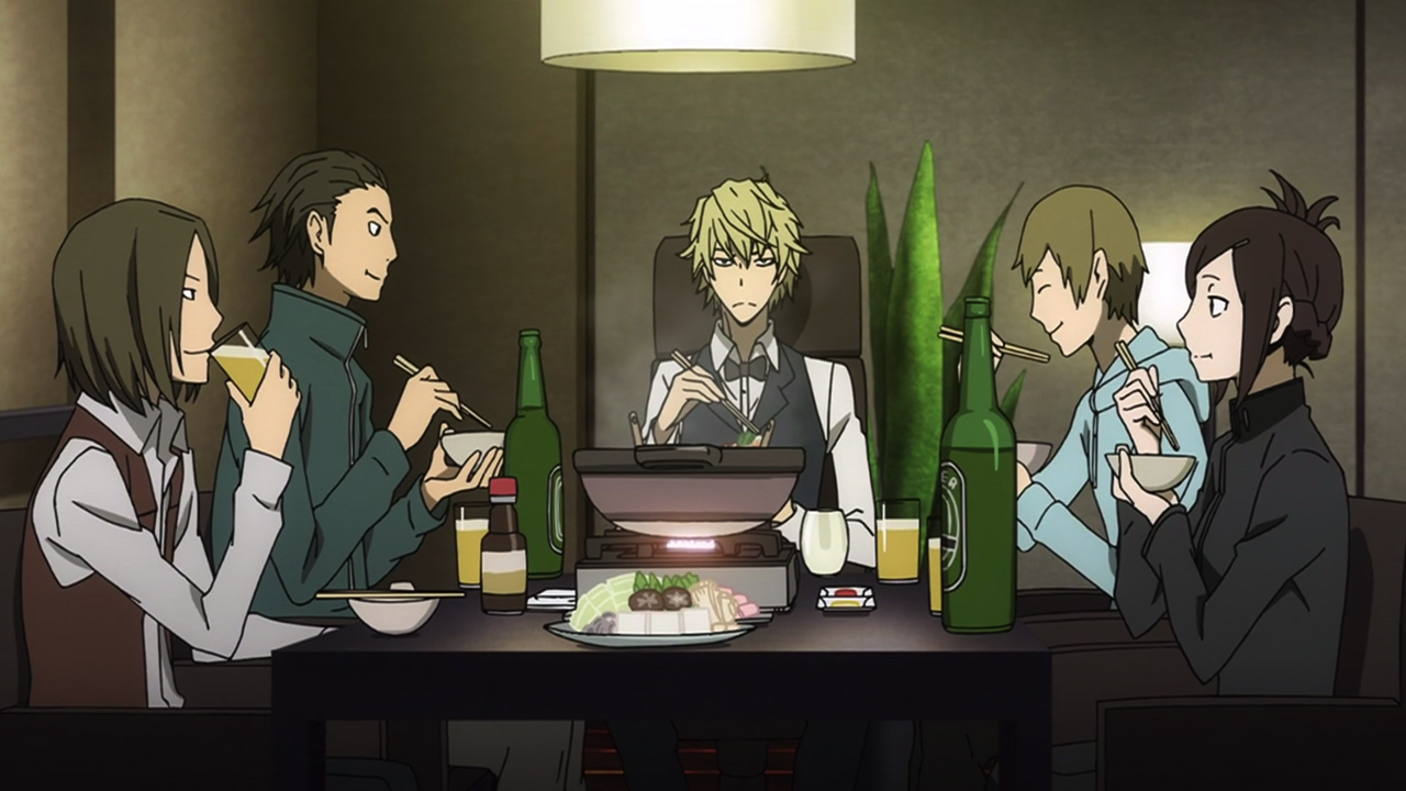 Celty, Mikado, Anri, Aoba, Mairu, Kururi and the Party Van Clan all try to outrun the swaths of bikers chasing after the ten-million-yen bounty on Celty’s head helmet. Oh yeah, and there’s a body in the bag she’s carrying.