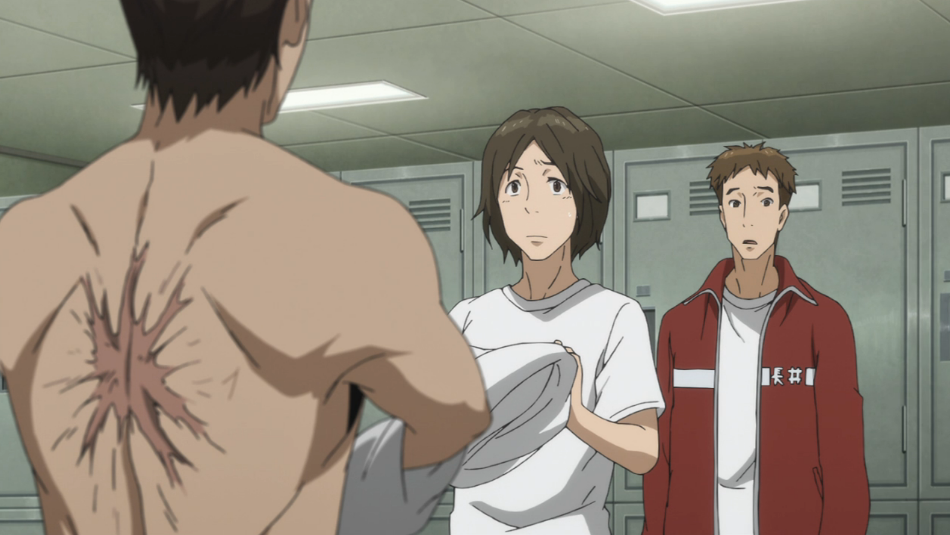 Watching Shinichi try to live his everyday life after all that happened was absolutely bizarre. It was almost like watching someone fake being happy, as he tries to go back to the way things were, only to have reminders of his present reality constantly brought to light. It’s obvious the most important part of that duality he tries to live is Murano, who after last episode seems to have finally accepted Shinichi and stopped asking dumb questions. For once, she acts with good intentions, despite the unknown greater good Shinichi must serve. To her and her classmates, they have suffered what no one should, a loss of life the likes of which matches the worst school shooting tragedies in America. While she doesn’t understand the extend of Shinichi’s involvement, she understands the extent he has suffered because of it.
