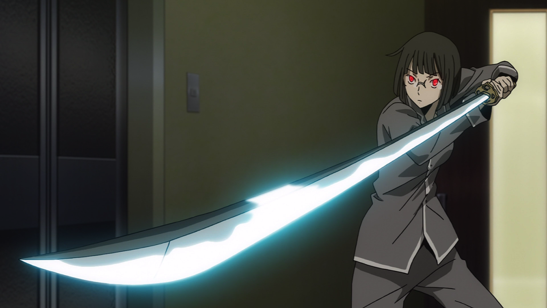 It’s a pity, for in spite of its disastrous artistic quality, this episode did actually have some nice story threads going for it. Varona’s back story is another take on Ryogho Narita’s beloved ‘sympathetic psychopath’ trope, though it remains astonishing how the man goes out of his way to avert the cackling, overdramatic archetype anime could easily do without. It’s explicitly stated that Varona loves the thrill of the kill, but unlike most walnuts wandering the Ikebukero streets, she sees violence as strictly intellectual satisfaction. Last episode already highlighted her obsession with trivia and this episode only further drives down the point that knowledge is the only thing she hopes to gain from her ‘profession’. It reflects in the overly elaborate and far-fetched ways she chooses to take out her targets and the fascination she has with ‘monsters’ like Celty and Saika. This obsession is just one of the many traits she has in common with Ruri, the Hollywood killer, though whether all these new deadpan assassins being introduced is indicative of Narita running out of creative steam or a sign of bigger things to come remains to be seen.
