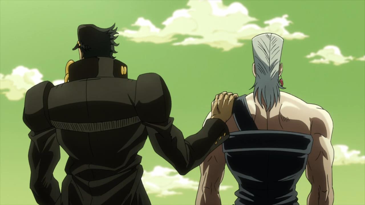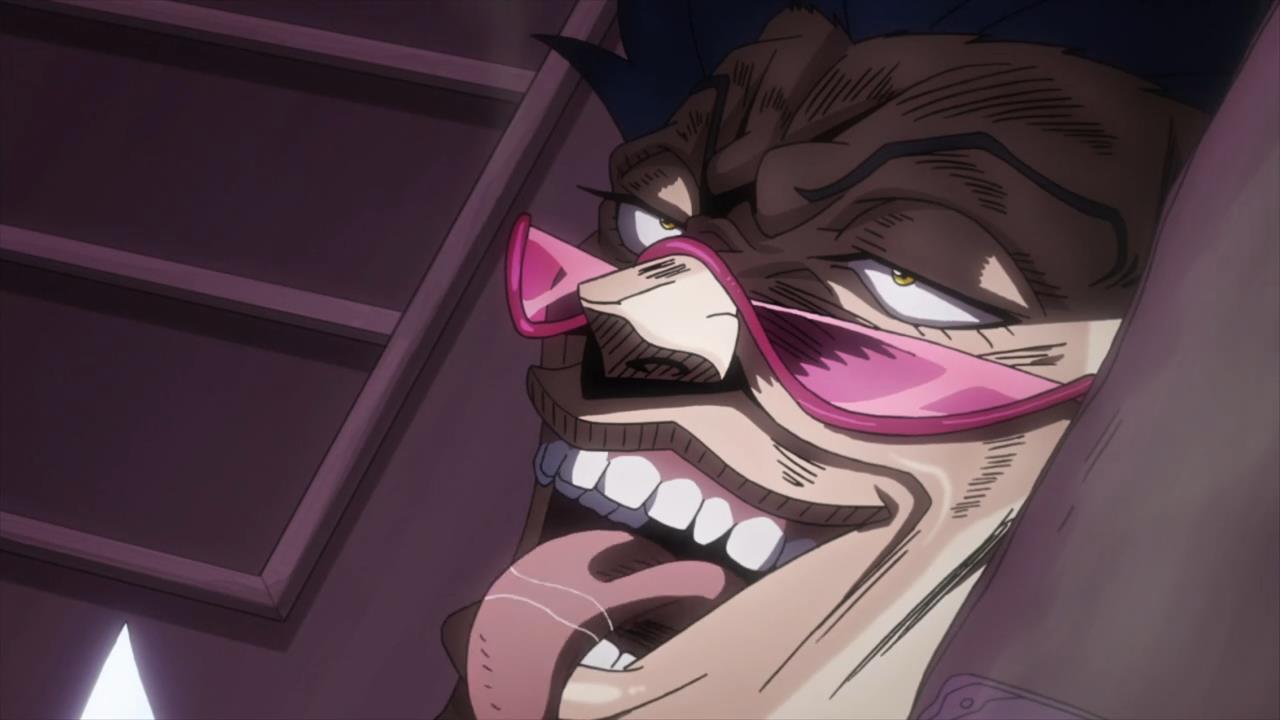 Alessi himself is hilariously over the top, even for Araki’s villains. Dio might have lit a dog on fire when he was twelve, but he was never a child molester. Every one of his scenes with kid-Polnareff would be super creepy if he wasn’t so ineffectual and stupid-looking (the bells in his hair, the sleeveless vest, the half-circle glasses, good lord). He had a gun and an axe and still failed to kill a toddler, and then he got his face beat in by eight-year-old Jotaro. Come on, man. Also, it’s such an incredible missed opportunity that he didn’t attack grandpa Joestar; a return of wily Battle Tendency Joseph probably would have stolen the show a tad too much, though.