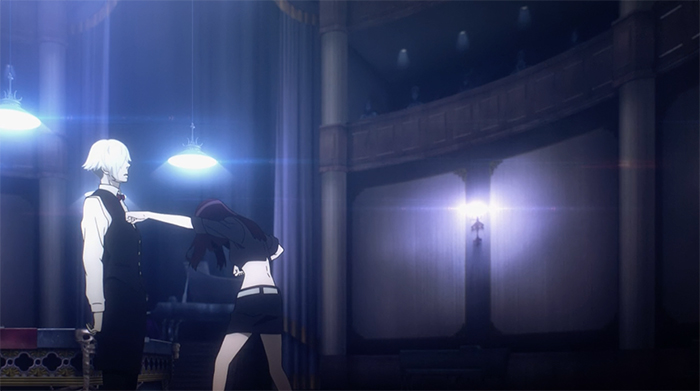 Artemis: I’m still not a fan of Death Parade’s whole crime drama thing, but this episode was markedly better than the previous one – albeit even more melodramatic and theatrical at times than that very first episode. While I don’t necessarily think there was enough content to warrant a two-episode story in the first place, this one was by far the stronger of the pair; overblown, yes, but also better paced and with a conclusion that I actually really liked. With the notable exception of 6, Death Parade has always showcased some of the very worst of humanity, and it would have felt hollow and profoundly unconvincing had our unnamed assistant actually managed to persuade Shimada to ultimately put aside his grief and rage. I found the scene during the end credits as we witness the happy memories of Shimada and his sister, overlaid with his brutal stabbing of the air hockey pucks, to be the most compelling and emotionally affecting of the entire story.