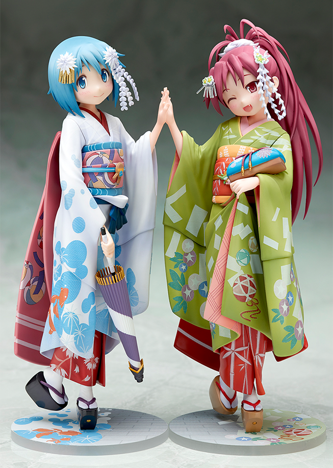 Marlin: I’ve said this once and I’ll say it again. There’s no reason why these two should be romantically linked. They knew each other for like three days and then they both died. Everything post-tv show out of Madoka has been a pretty big disappointment, and the elevation of the SayakaXKyouko ship is one of the absolute worst parts. I’ll also note that Madoka designs just do not translate well to realistic proportions. They just look like someone stuck their stupid football heads onto normal kimono girl figures and it’s just plain weird.