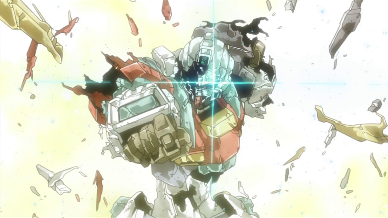 And so the fight comes to an end, and what do we get? We get a fight that’s more Dragonball Z than Gundam, and while I was initially awed by the spectacle, I was immediately worried about it. Destroying a quarter of the planet in an energy blast that creates miniature black hole is in theory, a very cool thing. The problem is that this isn’t Gundam anymore. This is a demonstrable example of power creep, and all of the nasty implications it brings with it. When you now have robots that can literally destroy celestial bodies, how do we get the likes of the Zaku Amazing, K9 Sniper, or even the Fenice into gunpla battle again? When you have robots that can blow up the moon, how do you fit the less-powerful robots that rely on strategy and experience to win? It doesn’t matter how many traps you set up or if you attack from a good vantage point if your opponent can blow everything up in a 10 mile radius.