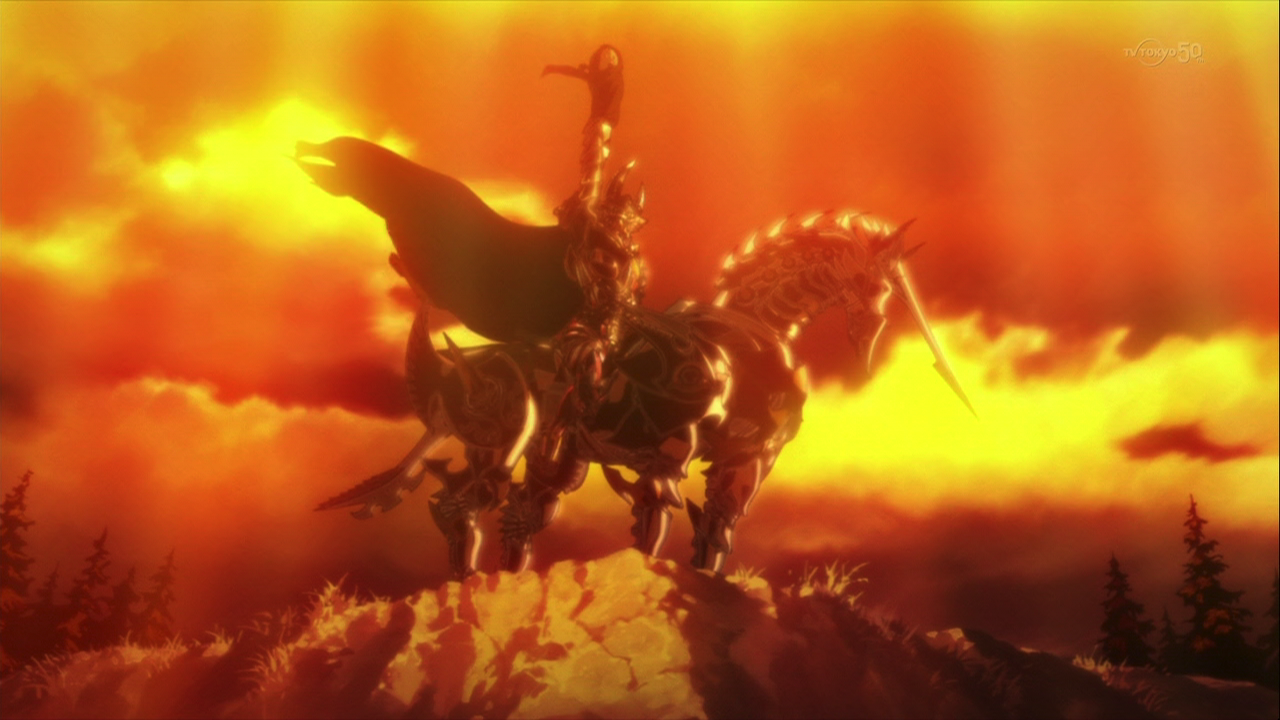 Garo is an anime that ends with our longcoat-clad hero cutting the face off of his immortal nemesis, fusing his superpowered armour together with his dad’s, going to hell and escaping surfing on a mechanical horse. It’s also one of the most intriguing character journeys and sincere epics of recent anime history. Garo is a show that refuses to compromise on its heavy metal album cover aesthetic and bombastic violence ripped straight off the pages of a disgruntled teenager’s sketchbook. Yet at the same time, it topples the bread and butter of dark fantasy that has brought the genre to a screeching standstill and restores old ideas that feel fresh again after years of pragmatic cynicism. In spite of its medieval waste land of a setting, considerable body count and shameless refusal to cover up any of its more unsavoury excesses, Garo is an idealistic story at core — providing two distinct views on heroism that for once, are treated as complete equals.