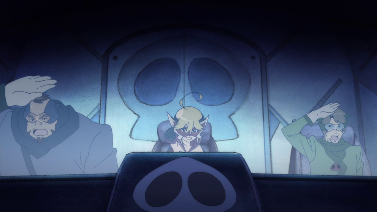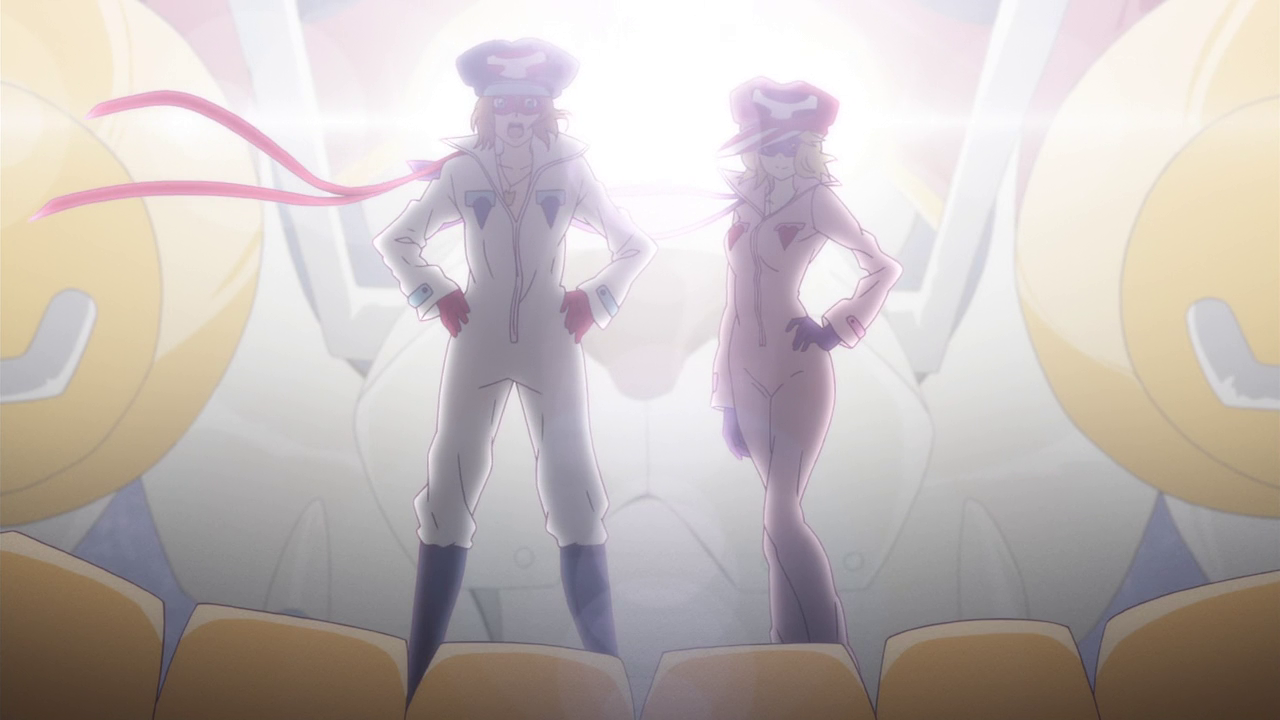 The characters are definitely the highlight of Yatterman Night, easily establishing themselves as the reason to watch. Once again, the show proves that one of its strongest traits is its balance between two spectrums. Leopard is carefully balanced between youthful innocence and the kind of savvy self-aware humor that makes her an amazing “remake” of the original Doronjo. The show does have its occasional skeevy moments, but Leopard is never explicitly sexualized in the way similar young female protagonists have been in recent works such as Zvesda. All in all, she’s a compelling viewpoint character and one I was glad to root for from the very beginning. And of course Tonzra and Boyacky deserve praise for being perhaps the best foster parents in anime in recent memory. They too are expertly balanced between comic relief and concerned parental figures. Galina and to a lesser extent due to lack of screentime, Alouette, are characters who evolve and grow over the course of the series, proving that Yatterman Night could balance its established personalities with ones that would grow to be more interesting as the narrative progressed.