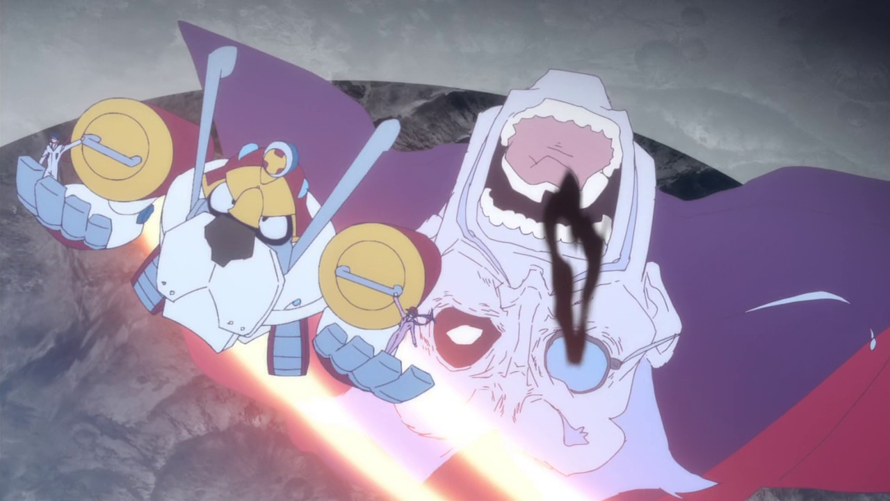 Yatterman Night leverages this dichotomy to be able to switch emotional tones at the drop of a hat and never quite feel indecisive while doing so. We can have ridiculous episodes about a sumo wrestler with extreme polyuria or a fisherman with questionable sexual orientation (or, most notably, discovering the rusted remains of Speed Racer‘s Mach 5 long after its owner has presumably passed on), and then immediately turn around and ask, “Man, what kind of fucked-up world would create these situations?”, making us cheer even harder for Doronbow to succeed. Even the climax of the show somehow makes the silly original Yatterman theme about cheering on a robot dog into one of the most heroic and fulfilling moments in recent memory.