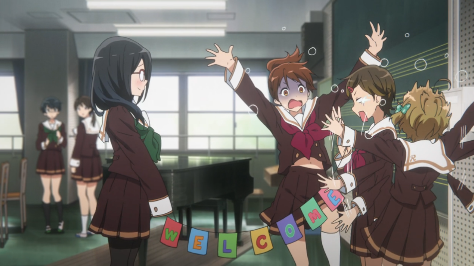 I feel like KyoAni has been in a slump the past year or two but if this first episode is any indication, Sound! Euphonium sees them returning back to form. Aside from the stunning production values, the level of detail and nuance they add helps flesh out an otherwise simple story in a way no other studio can. Little shots like Kumiko blowing a cherry blossom back into the air (watch the episode, it will make sense) say so much without saying anything at all. And speaking of Kumiko, she makes a really strong first impression as a main character. She has realistic concerns, fears, and expectations without being angsty or feeling sorry for herself. Even the cast as a whole has a level of passion you don’t often see in these kinds of shows. There will be no eating cake or longing for a “normal” high school life here. I wasn’t wild about some of the dialogue that ran too long, like the girls’ introducing themselves, and I could also care less about the musical instrument porn. But those are shortcomings I am willing to put up with if Euphonium can keep up this level of quality going forward.
