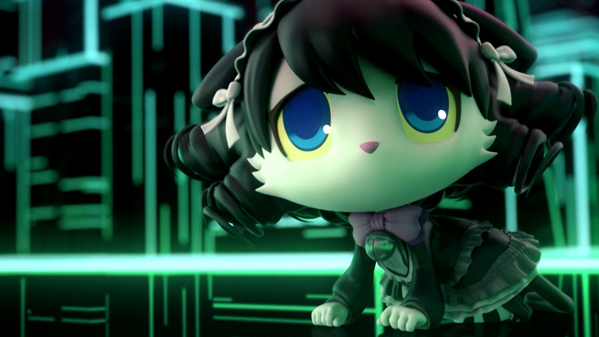 I really liked the art and direction in the 3D bits. The fight sequence is consistently well framed and paced and lit. The characters don’t have mouths so that nobody has to lip sync them, but they make up for it by syncing up every note of their instrumental performances perfectly. The environments are about what you’d expect of short episodic content, but I feel they get a pass on that because while they’re not especially detailed, they are plenty striking. Outside of the 3D sections, though, the show is visual gruel, falling like the plot into some uninspired and lower-detail midpoint between K-On! and Aikatsu.