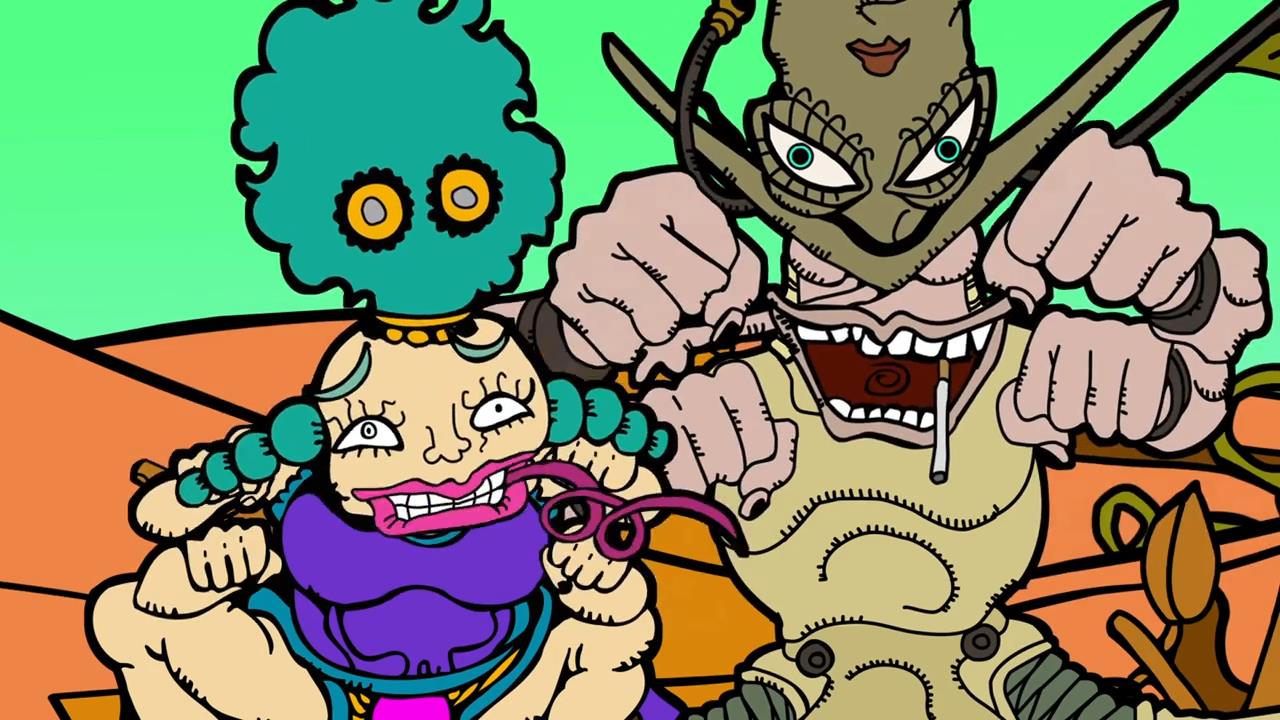 This was just like the Oingo Boingo battle, in that it’s incredibly stupid and chiefly from the villains’ point of view as they scramble to make the predictions of Boingo’s Thoth come true, with most of the tension being in wondering how Araki is going to put a twist on things to foil the bad guys. As I said during the previous OINGO BOINGO BROTHERS ADVENTURE episode, I really appreciate that JoJo can take these weird detours and have completely silly confrontations sprinkled about the serious ones. Not that JoJo isn’t always completely silly, of course, but I’ve always felt one of anime’s strengths as a medium is its ability to swap tones without feeling too jarring, and JoJo does this spectacularly.