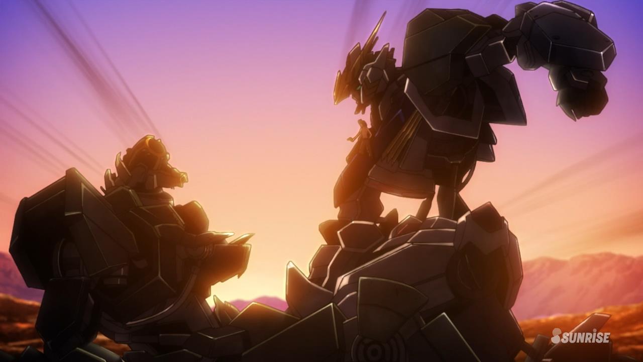 Orga, Mikazuki, and company stage a coup, taking over CGS and renaming it “Tekkadan”. Meanwhile, Crank Zent (aka Totally-Not-Ramba-Ral) returns to the battlefield for a fair duel with Mikazuki and Gundam Barbatos.