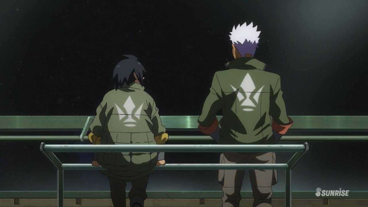 It’s fitting that Orga and Mikazuki receive the bulk of the development, seeing as they’re the two main characters, although I’m not sure I’m impressed because it was actually good or because G-Tekketsu has set a low bar in the past. Orga’s gung-ho attitude has always felt like bluster, and these episodes have him dropping the act a bit. He’s just a kid in over his head, scrambling to be a leader to his bros, and he clearly wants to imitate Naze’s casual authority. When complaining that Naze “treated him like a kid”, he’s embarrassed, not angry, and when Naze suggests letting the crew go on shore leave he’s willing to spend all of Tekkadan’s profits to party just to put up a good front.