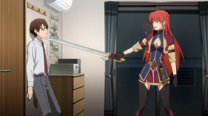 Characters from various (fictional) light novels begin appearing in the real world to do battle, and also there’s a boring everyman protagonist. So, reverse isekai?
