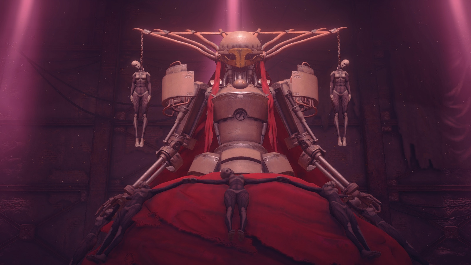 In fact repetition is an important point here, as Yoko employs a mechanic that he’s become somewhat (in)famous for, which is gating content behind repeated plays of the game. Reaching the ‘end’ of Automata means you’ve probably not seen more than a third of what the game has to offer along its critical path, and repeated plays are essential to progress the story further and reach the true conclusion. In all Automata has five ‘real’ endings and a further twenty one ‘bad’ endings (which are usually jokes, complete with ultra-fast credit scrolling). I’m deeply torn on this structure – at its best it offers startling insight on previous events by supplying additional information from a differing perspective, but it’s also often tedious to go through content you’ve already seen, and I feel that a lot of the extra content from subsequent playthroughs could have been elegantly integrated into a single ‘true’ path through the game with a bit more effort. It’s even more frustrating since the game arguably holds back an awful lot of its best stuff until you’re very deep into the replay loop. In its defence though, Automata is far more forgiving about this than previous Yoko games have been, with the majority of the content after your first replay being entirely new.