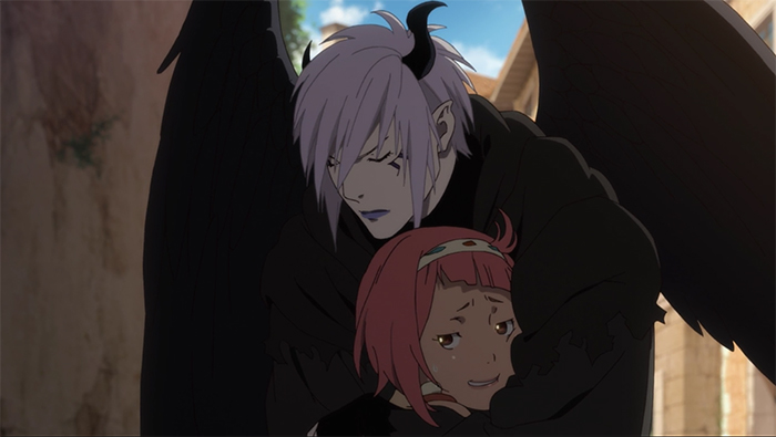 Artemis: This kind of episode is exactly why I think Virgin Soul would’ve worked far better as a one-cour show. What we should have got was a great action-packed episode – a reward for slogging through all the dialogue-driven build-up of the previous several episodes. What we actually got was a whole lot of nothing, likely for the sole purpose of using up time. I’m not exaggerating; by the halfway point, absolutely nothing of relevance had happened either in terms of talk or action. There were plenty of of wide camera pans over rooftops though, and I was also allowed the thrill of watching Azazel’s cloak flutter ominously in the wind a lot. Not exactly the payoff I’d been hoping for. Pacing wasn’t even the issue in this episode so much as just plain bad writing, and I’m worried the trend will continue. C’mon Bahamut, you’re supposed to be better than this.