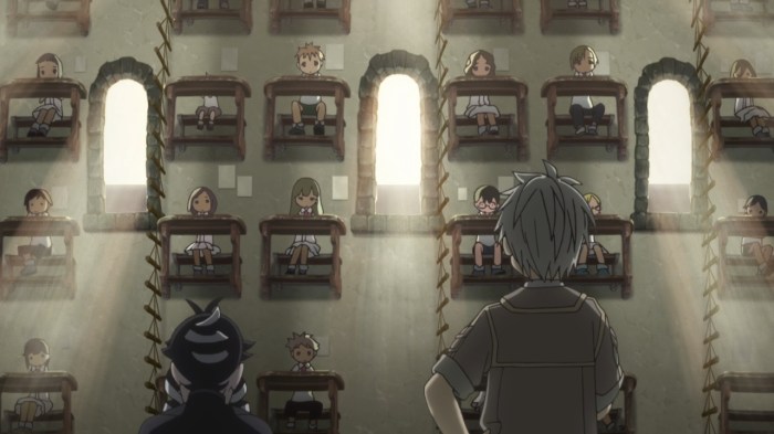 For better or worse, I’m partially burdened by the knowledge of what Made in Abyss eventually becomes after it reveals its hand. But having not read the manga beyond out of context pages and a few scattered chapters, I’m not confident in my ability to discuss the plot as a whole, so I’ll be approaching the anime as its own entity. Made in Abyss makes an extremely strong first impression with its gorgeous art direction and unique style. The setting itself is oddly gamified, what with the conceit of explorers going down further levels in a seemingly endless dungeon to find treasure. It almost feels like an anime version of Etrian Odyssey or Spelunky, but without the blatant in-universe systems that so many other anime are happy to fall into. Overall I’m fine with it though, there’s something to be said for a classic treasure hunting escapade.