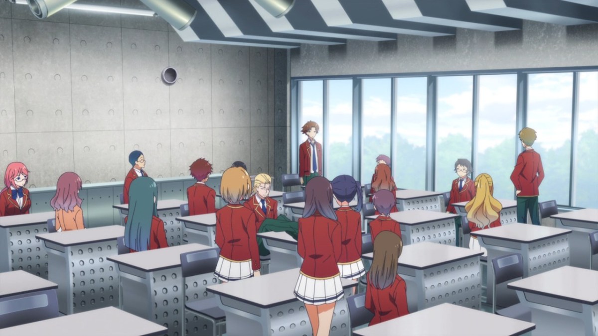 A protagonist stands at the back left of a classroom Published July 15, 2017 at 1280 × 720 in First Look: Classroom of the Elite ← Previous Next → You’ll never guess where the protagonist sits