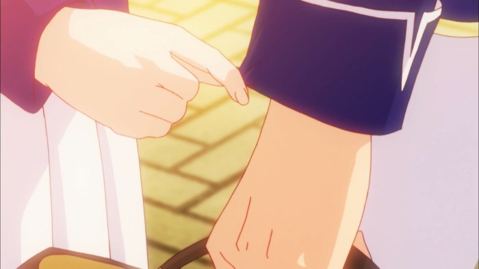 …except, no, none of this is true. We know by the end of the episode that Nagato isn’t actually super horny all the time, she just wants to be what her research has convinced her is the perfect girlfriend. She’s putting in a lot of effort, it’s just that the research she has done has presumably been on some pretty unsavoury parts of the internet. She is, in fact, extremely nervous about physical contact and intimacy, and is mostly using these research-driven talking points to deflect.