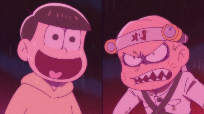 Jel: With the bar extremely high for how far off the deep end Osomatsu is willing to go, I felt like this episode was a little disappointing. They did a good job switching up the style to more of a suspense/horror atmosphere but I think they could have gone further. The final showdown with Jyushimatsu was particularly disappointing as he’s usually the biggest wild card, and yet they didn’t really do anything with him. Maybe this would have worked better as a half episode segment rather than the rare full episode plot line we got. At the very least it’s good that these scumbags pay some consequences every now and then and I got a good laugh at their parents’ reaction to their fate. Overall an OK but forgettable episode.