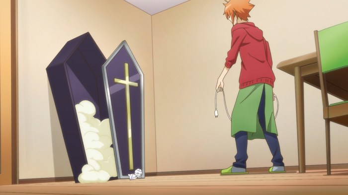 One criticism I do have is that at the start of the episode, after the coffin containing Mii shows up, there’s a joke about the protagonist expecting there to be a full-size mummy inside. It’s ruined because the opening plays right before this scene, meaning we see Mii (and a few other characters that are probably going to be shipped to protag) before the coffin is opened. Placing the opening after this scene would have made the joke work.