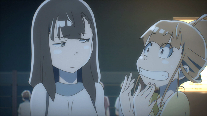 Marlin: This show has been so consistently good that I wonder if I should only comment on when it finally has a bad one from here on in. Hinata has consistently prided herself on being the “mature one” of the group, so it was nice to see what happens when she’s put in a bind. It is very common for those who want to project that they have everything together to hide their problems, oftentimes until it’s too late. This is where Yuzuki and Shirase’s personalities really shine. It makes sense that an actress can tell when someone is lying, and Shirase owns up to her stubbornness to break through Hinata’s shell. For all the attention given to Kimari last episode, it seems to me that she is the one least integrated into this group. At every point when there was drama, her opinion didn’t seem to matter, and when it came time for Yuzuki and Shirase to go over Hinata’s head, she was completely out of the loop.