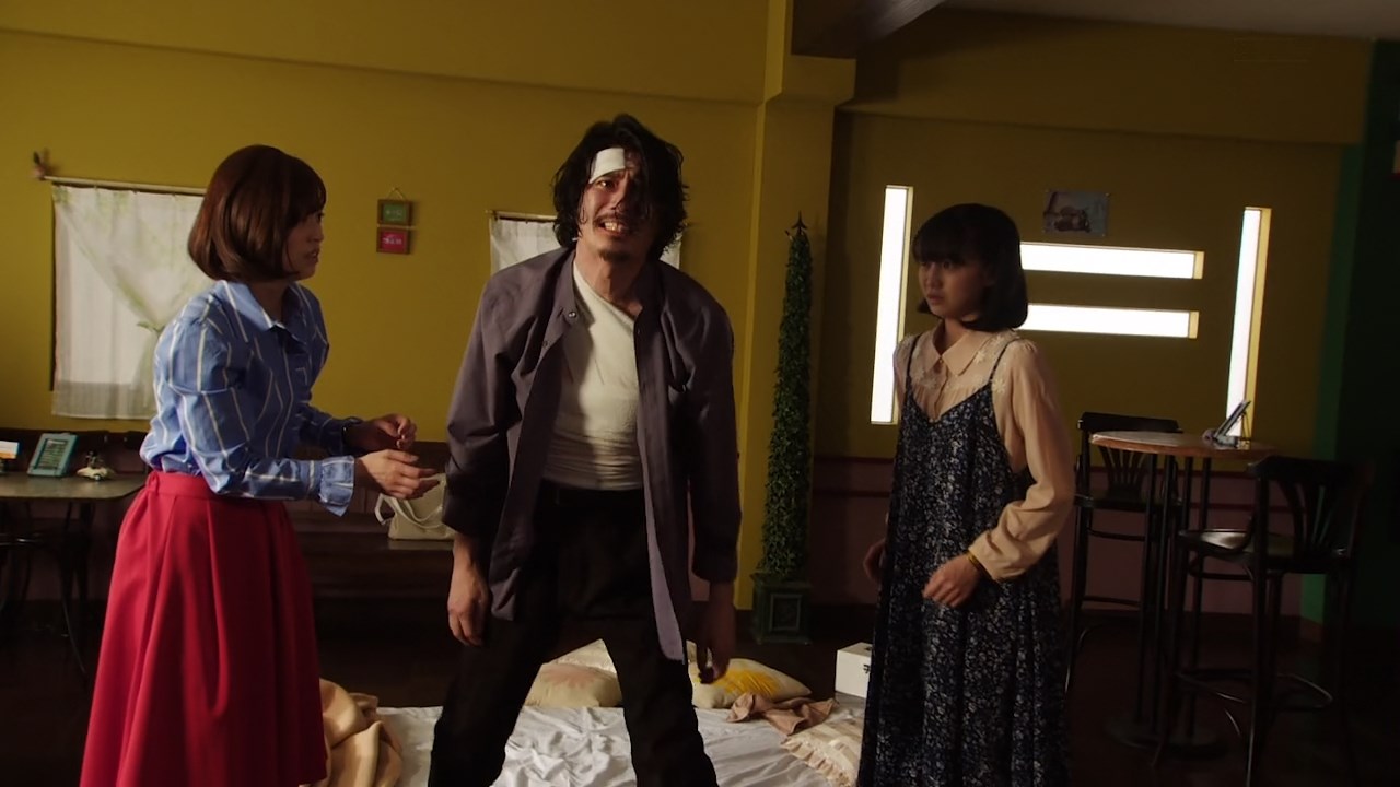 This episode is basically Build in microcosm – there are some good, even provocative ideas here, but they’re incredibly poorly presented and, as always, the show cannot decide what sort of tone or plot it wants to pursue. So we’ve got stuff like Banjou dancing in showers of imaginary money, then Katsuragi talking about murdering him to save mankind, all in the space of a few minutes. In fact, the whole Banjou thing is as bizarre as hell – the fact that he was no longer associated with Evolt at all was a huge plot point a few episodes back as it deprived him of his ability to transform. Then he got that back…somehow, and now the show is basically telling us that there’s still a part of Evolt dormant in him that could wake up at any point. I think a smarter show would have tried to connect those points by saying that Banjou retained his ability to transform because there’s still Evolt in him, unknown to both of them, but as it is Build never even gestures towards the idea. It’s not a major problem but is also yet another example of the kind of careless, sloppy storytelling which prevents us taking the show’s attempt at epic buildup seriously.