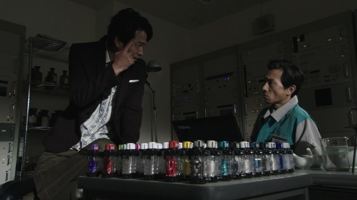 Let’s tackle the big one first, which is the sudden introduction of the mysterious ‘Lost Bottles’ that are the latest McGuffin to determine the fate of the world. I’d be lying if I said Kamen Rider had never suddenly shifted its plot focus late in the show, but it’s very rarely a good thing and that’s also the case here. Build has already suffered from the banality of the chase for the merchandise more heavily than a lot of toku series (and that’s saying a lot) so suddenly introducing yet another set of things to collect is hardly an invigorating new thing for the audience. Furthermore, these bottles were never really teased or foreshadowed, they just appear and are suddenly the most important thing in the plot. It’s tough to take them too seriously when we’ve been given no indication why they’re dangerous or what they’ll do.
