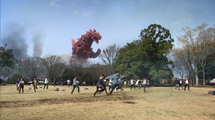 What really stood out to me in this episode was just how good the costume design is. The Ultramen themselves have always been somewhat restrained in their designs, yet they offer a great contrast with most of the monsters they fight. Lord Grigio, this week’s monster, definitely has a bit of a radioactive dinosaur vibe to it, but just look at that darn silhouette. This thing is rocking two colours and is plenty intimidating. It’s a good choice for the first monster of the new series, and knowing how Ultraman can be, I’m sure we’ll see some incarnation of it again.