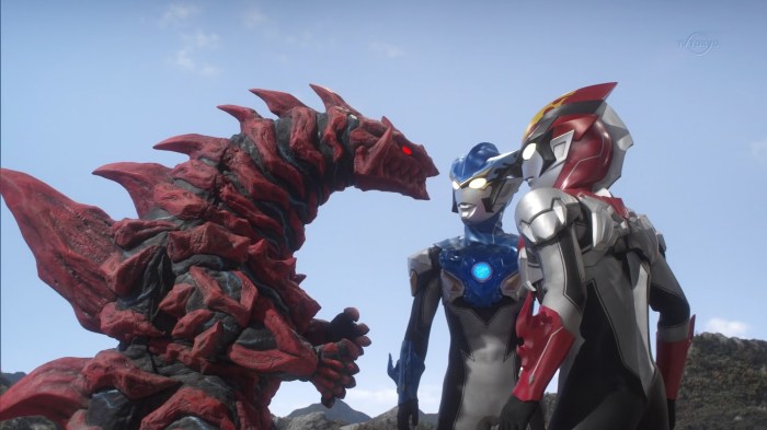 The biggest difference between this and X is that our heroes are regular guys. One of our biggest gripes with X was that the defense force that it followed, Xio, seemed focused on monster destruction with very few exceptions. Yes, it’s a kids show and the whole point is to see a giant monster blow up while Ultraman does a pose in front of the explosion, but the really good episodes were the ones that allowed us to learn a little bit about the monsters themselves. While the first episode of R/B sees the monster of the week quickly blown up, at the very least we know that it had already stomped around and set some things on fire. There was a necessity in removing the monster, rather than it being some kind of no questions asked public service like in X, and that gives me some hope that these two guys aren’t going to barrel into a fight without good reason to do so. We’ll see, I guess.