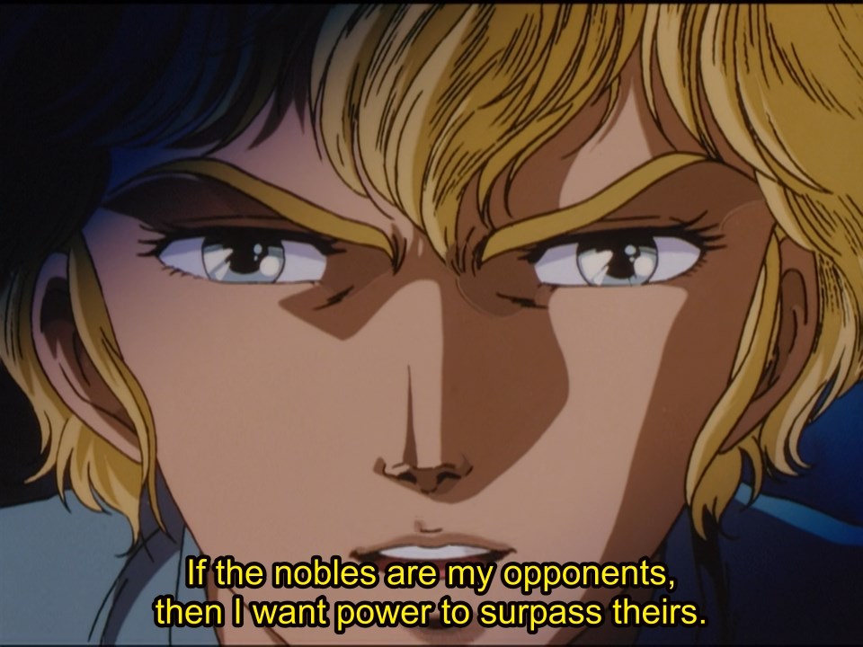 About Reinhard, and Kircheis and Reinhard, I wonder if you got the same feeling from these two from DNT. I’m just curious because I kept seeing reactions that came across to me as people not really understanding what Kircheis is to Reinhard, and as I watched DNT I don’t think they managed to portrayed this relationship – not “well”, more like, “at all”. I think it’s partly because the voice actors had zero chemistry and had a weird approach to their characters, but also because unlike in the OVA Reinhard in DNT comes across as actually calm and cool and unflappable. In the OVA (and in the source novel as well) it’s obvious that he’s anything but, he’s a very young person who has this constantly boiling anger and frustration and ambition driving him. I do really hope that you really stick around to see where he ends up and how (even if the OVA does commit a frustrating adaptational error at one point with a key character moment).