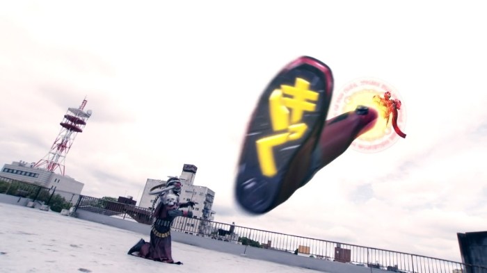 The reason it’s better is largely due to the presence of Tasuku Nagase as Kamen Rider Beast, which is not something I ever thought I’d say at one point. Beast spent a lot of his tenure in Kamen Rider Wizard as a lame, unfunny ham, but Nagase shone towards the end of the show when he was asked to dial it back and portray a more human, laid-back side to the character. He brings that same panache to his appearance here, and lends his character an effortless charm which everyone else in this show is so lacking. The fact he actually gets to transform and fight adds a huge amount too, and definitely makes the whole thing feel like more of an actual tribute to Wizard than simply using it as set dressing. This is definitely a good template to use for future Rider appearances – a few neat personality bits, some fun joke callbacks (that mayo is still gross as hell) and a brief chance to kick ass. He makes his mark without making it all about him.